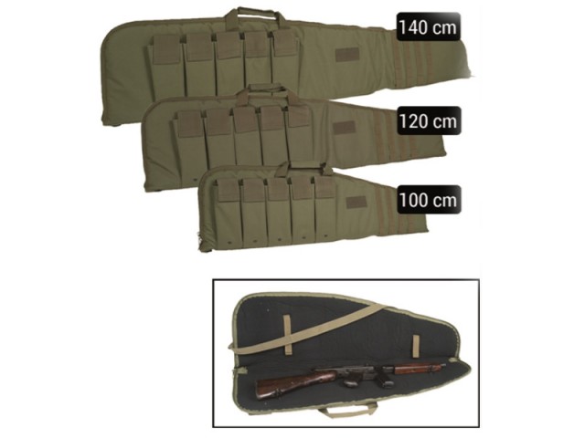 TORBE ZA OROŽJE 100cm, 120cm, 140 cm, oblazinjene, primerne za nošenje orožja tudi z optiko. Več žepov za nabojnike in strelivo. NA voljo v olivni in črni barvi. Primerna tako za lovsko kot za športno orožje.