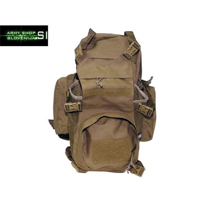 Vojaški nahrbtnik Molle je odličen taktični nahrbtnik. Namenjen je za krajše pohode oz. pohode. Ima velik žep z zadrgo in notranjo mrežo, dva velika stranska žepa, dva odlagalna žepa z mrežico, zunanji žep za vodno vrečo, nastavljive in oblazinjene naramnice in sponko za zapenjanje okoli pasu. Posebnost tega nahrbtnika pa so integrirani Molle trakci, kar pomeni, da lahko na nahrbtnik dodajate žepe po svoji želji in potrebi. Velikost: 48 x 30 x 30cm.
